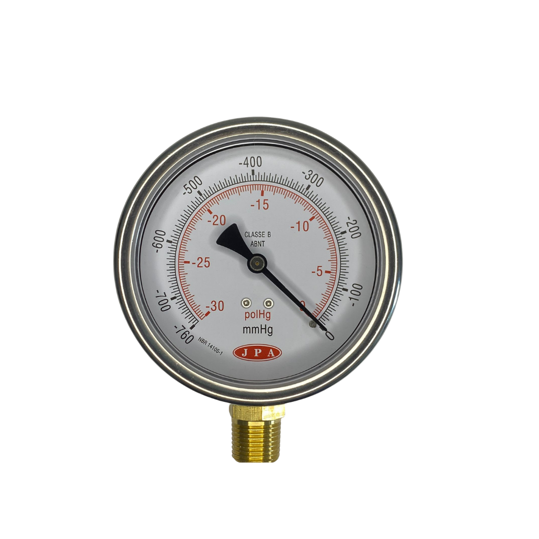 VACUÔMETRO RETO DN 100MM - 760MMGH X 30POLHG CAIXA INOX